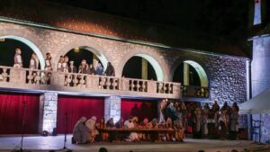 Ko je lansko leto kaplan prišel z idejo, da bi obnovili Ribniški pasijon, smo se ob dogovorjenem času za prvi sestanek začeli zbirati v dvorani. Začel sem – malo zares, malo za hec, na tablo risati shemo nalog in vlog, ki jih bomo potrebovali za izvedbo: kdo, kaj, kako… Mojo shemo smo preprosto uporabili za sestavo načrta in vanjo vpisali imena sodelujočih. Na koncu je kaplan rekel: »Imamo vse, samo organizatorja še ne. Luka, bi bil kar ti?«